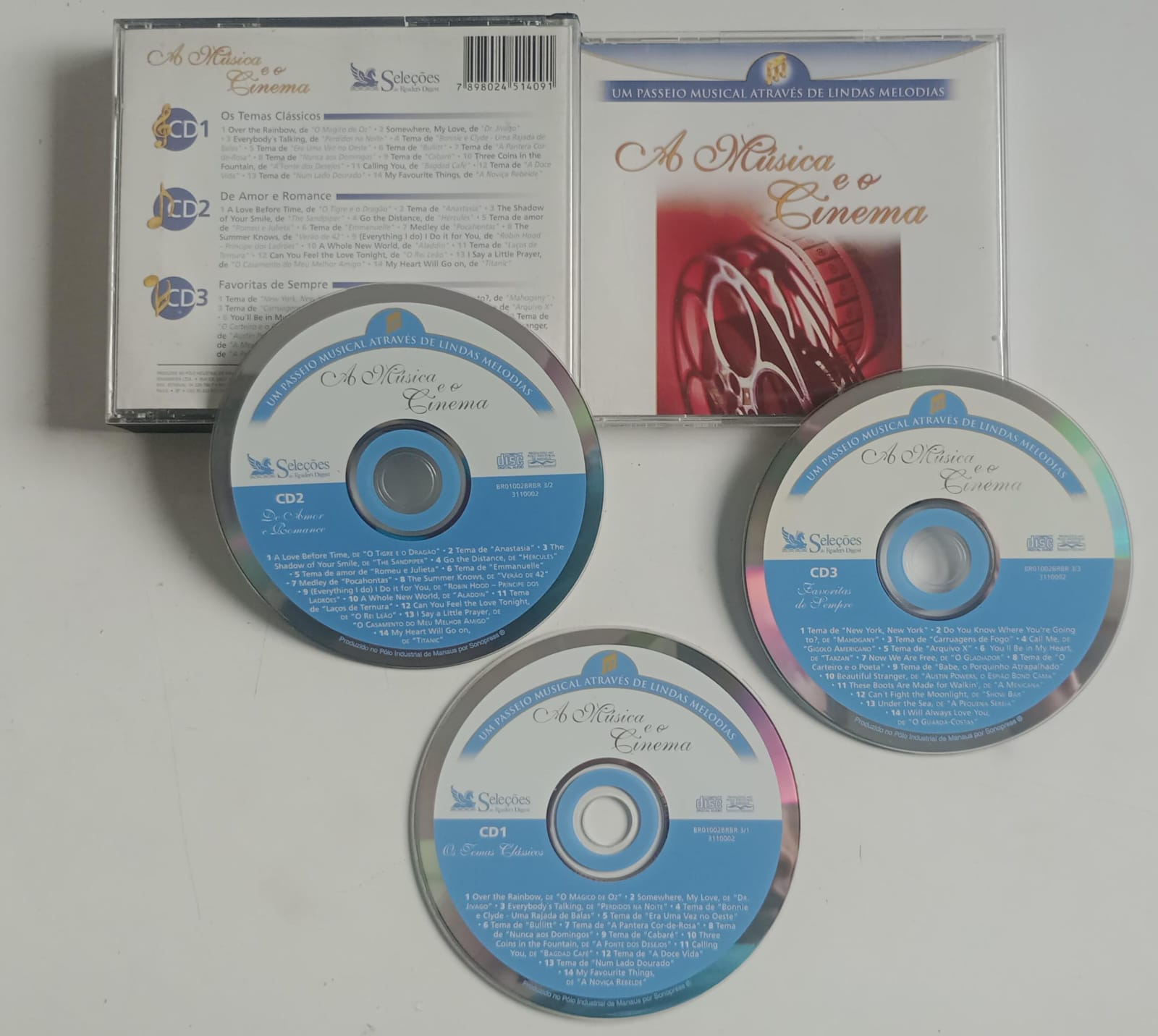 Condição: Usado Ano: 0000 Edição: 1 Gravadora: Reader''s Digest Genero: Tv/cinema Sku: 33003663 Código Barras: 6000330036636 Descrição: Coletanea com 3 Cds Midias Caixa Acrilica e Encarte em Otimo Estado Produto Testado