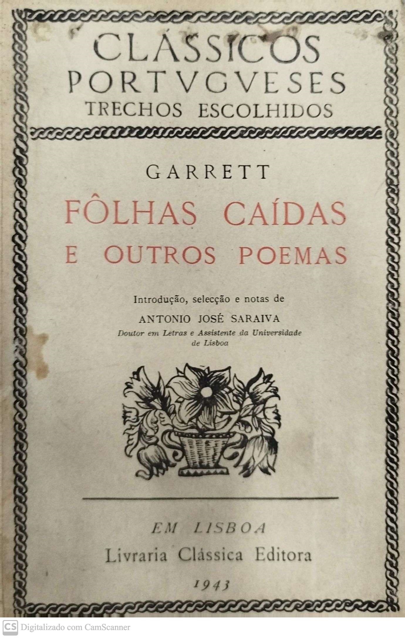 Livro Fôlhas Caídas e Outros Poemas Autor Garrett, Almeida (1943) [usado]